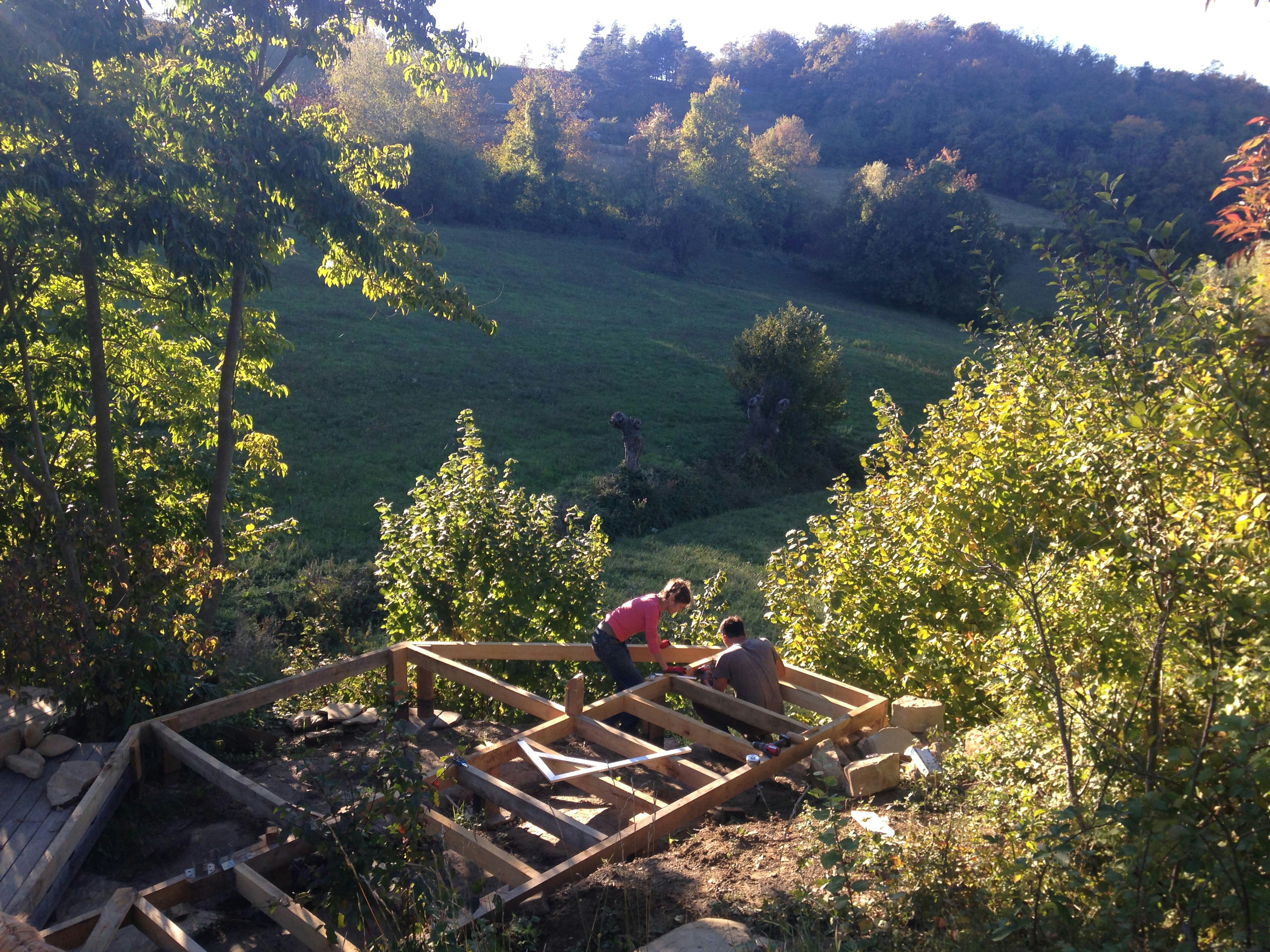 Il sistema di piattaforme che compone Vitalba Deck non ha un progetto predefinito: è nato e si è sviluppato in reazione sia agli elementi presenti nel sito, sia all’evoluzione della nostra esperienza complessiva del luogo.