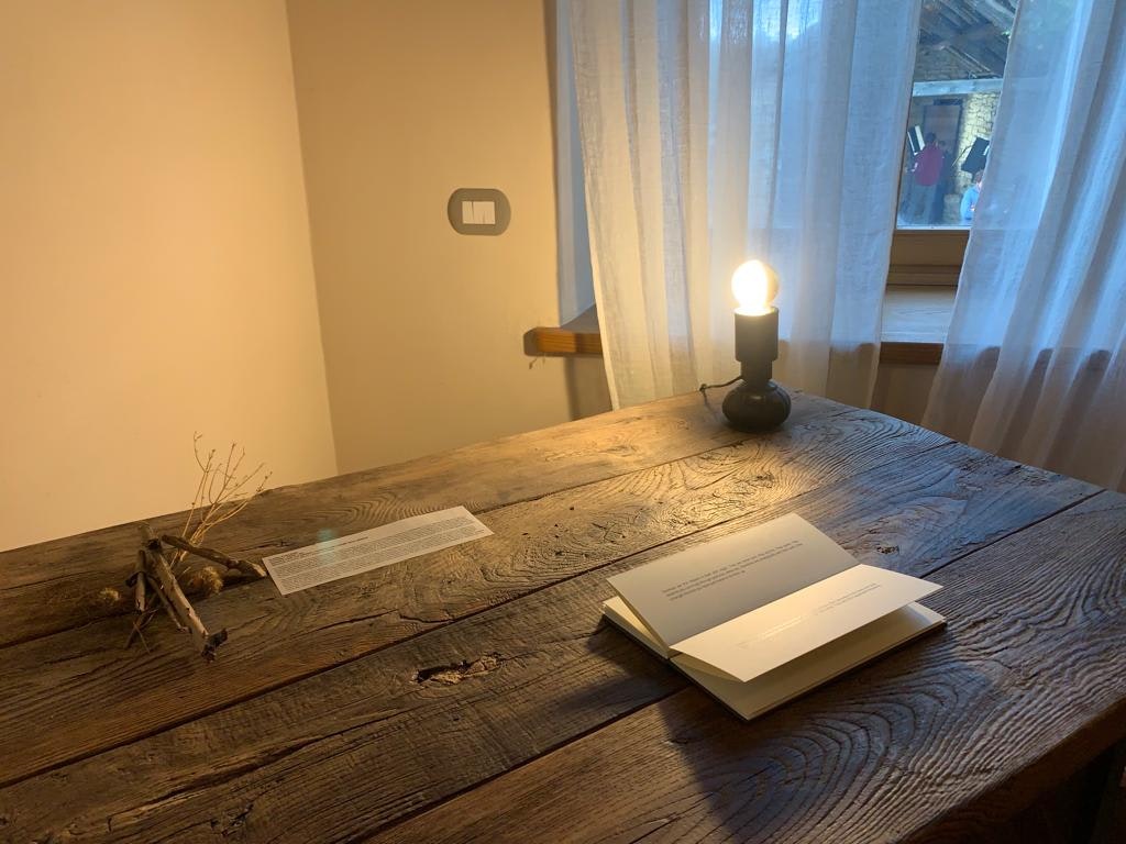 The concept of practice is at the heart of my research. Over the course of a year, I followed Pianpicollo's daily routine, absorbing its spirit. Dialogue with a group of six selected people, during six days of shared residence, consolidated my work. Pianpicollo is not just a place in the world, it is a way of life. It does non impose itself as an example, but as service to the earth, the animal, human and plant world. Eccomi, is the word that best represents the meaning of 'service'. Here I am, I am ready. Eccomi materialises in a bound notebook that collects moments of presence. It is inspired by the practises, experiences, and testimonies of Alice and the non-human inhabitants of Pianpicollo. It has the function of a viaticum, a hub for newcomers, from an outside world to an inside world. My writing does not define, it explores, observes, attempts to restore a dialogue with the sky, the earth, animals, plants, humans, and the sacredness which envelops them. The aim is to open the reader to the amazement of observing what life holds. And perhaps it is also a wake-up call.