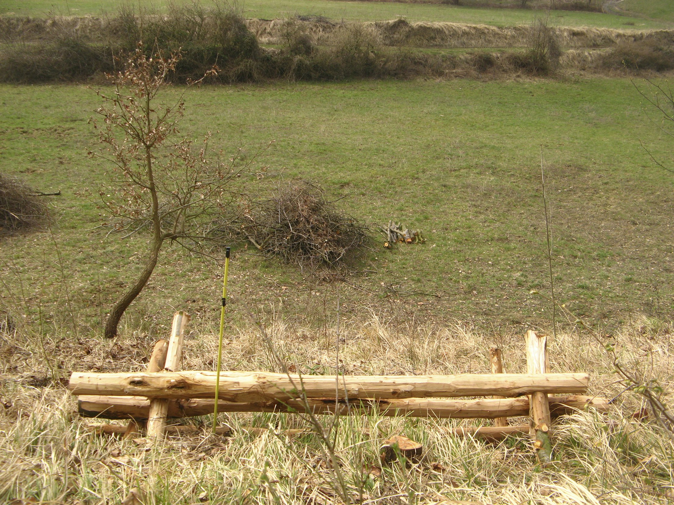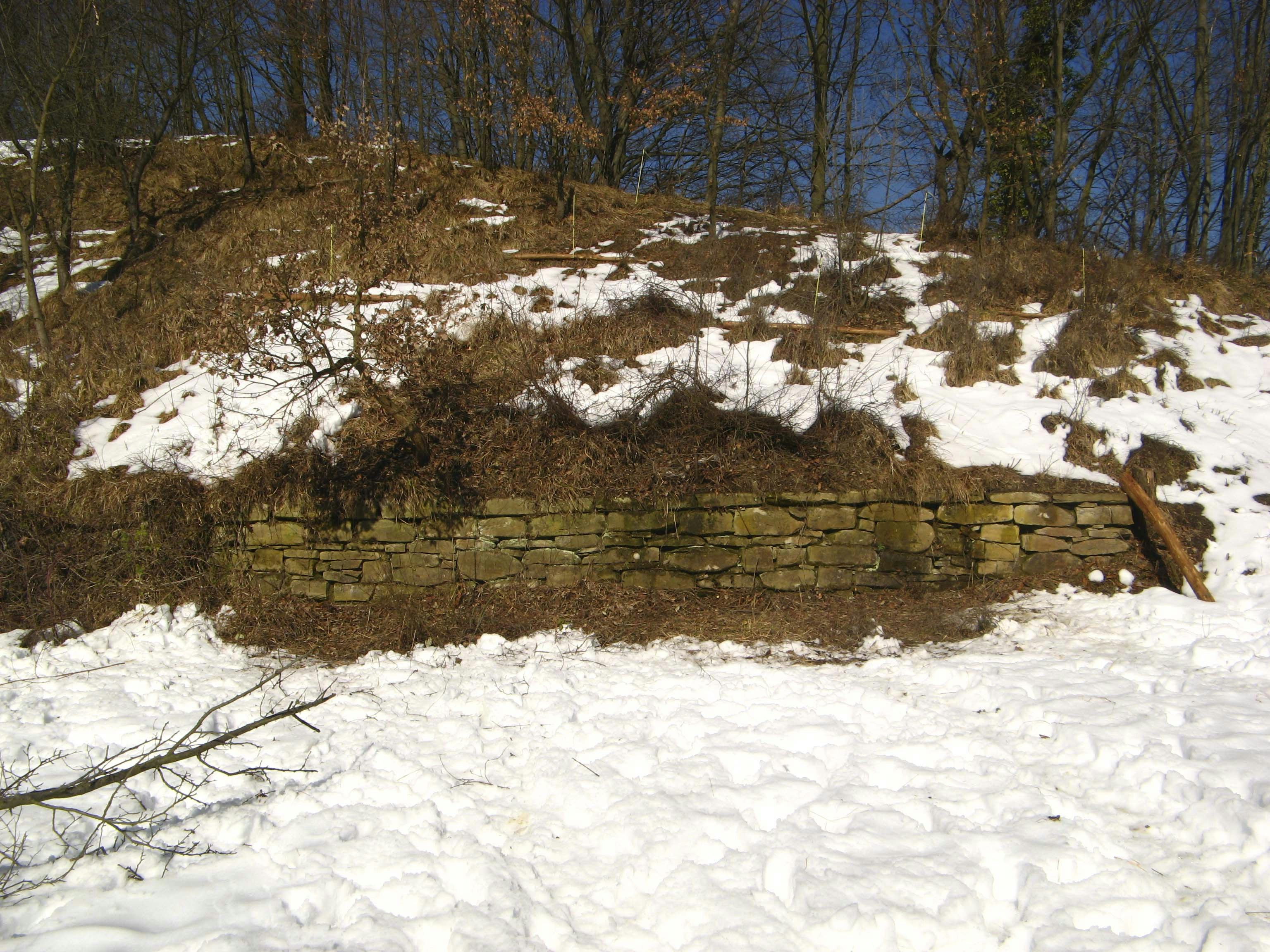 Vista la discreta pendenza, per contribuire a sostenere il suolo della collina e impedirne il dilavamento sono state realizzate alcune palificate semplici con legno di castagno prelevato dalla collina stessa.